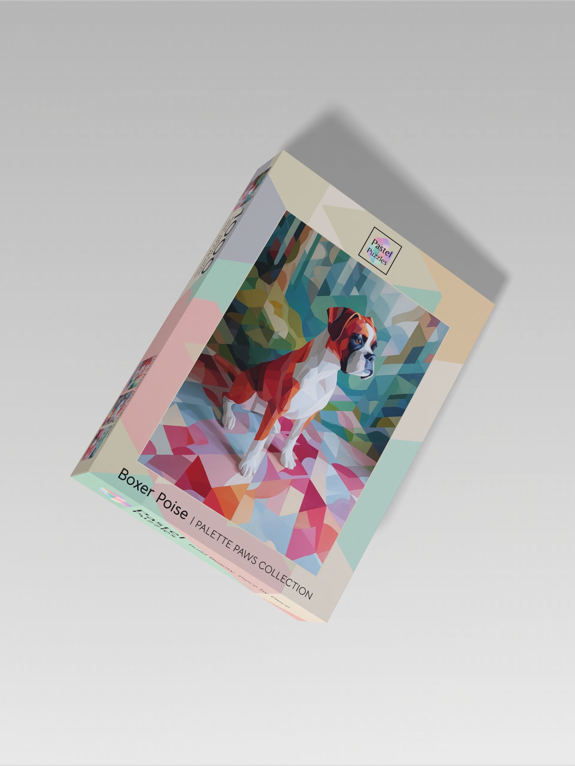 Energetic yet balanced, Boxers are athletes of heart. Seated and serene, this one watches the world go by. The stillness is painted with rhythm—motion paused, not lost.